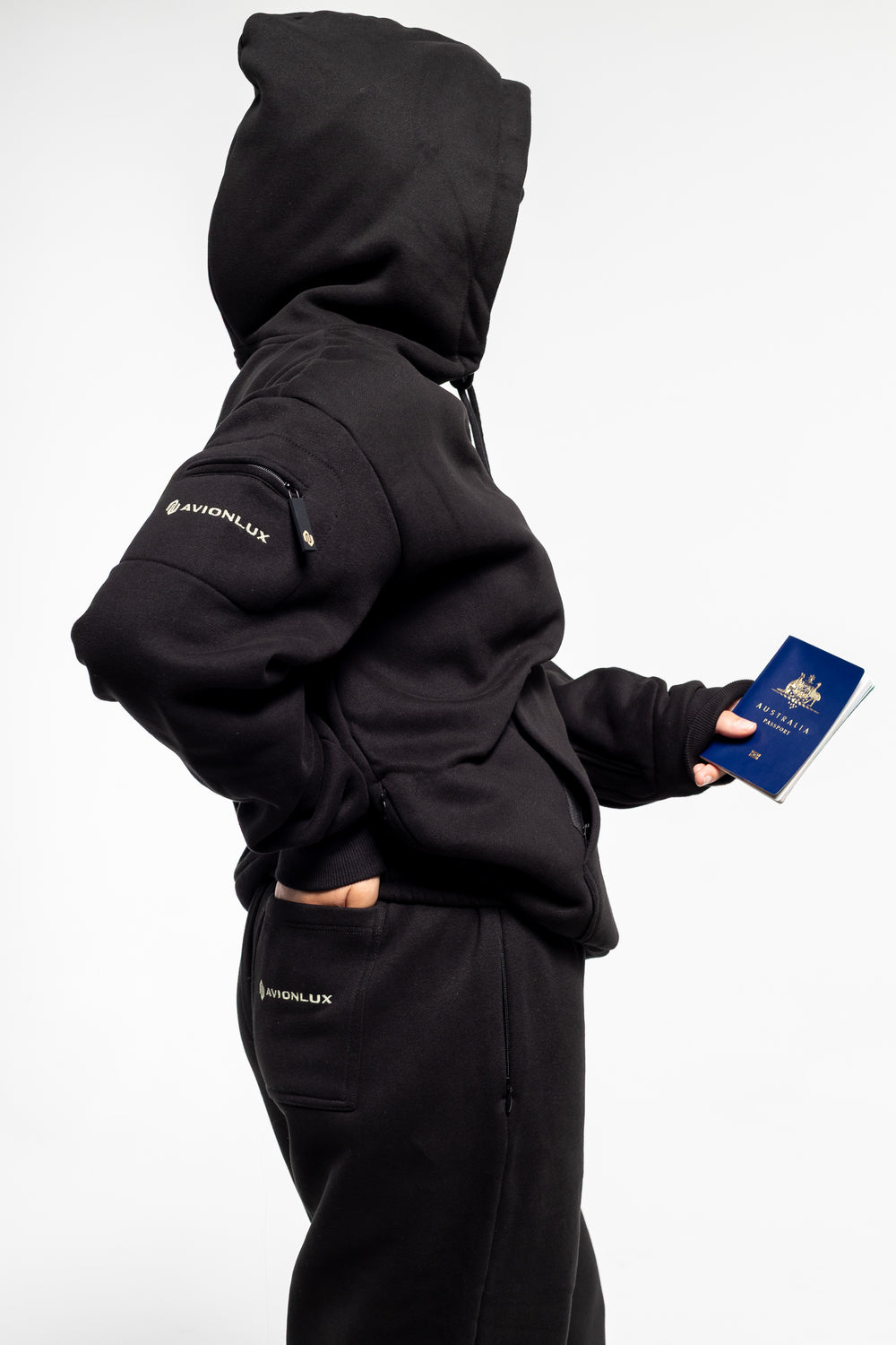 Keep your most valuable possessions within arms reach. 5 zippered pockets, a large central kangaroo pocket & secret emergency card/cash pocket underneath